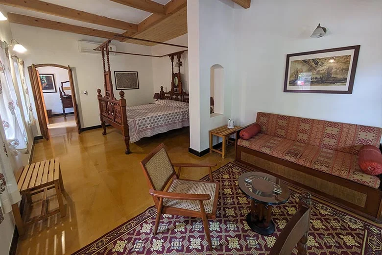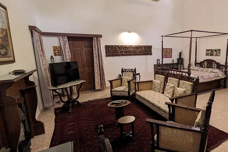 Welcome to the opulent Maharaja Suite at Gulnaar Villa. This classic room is part of the original architecture of Gulnaar Villa. Featuring lavish furnishings.